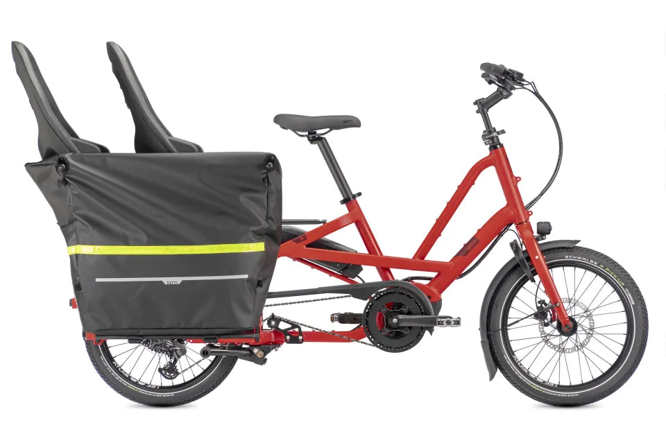 The Storm Box transforms the rear of your Tern e-bike into a super spacious weather-protected compartment. Switch effortlessly between carrying cargo and kids—protect your stuff from rain and curious onlookers with the Cargo Lid, and use the Kid Lid to keep little ones warm and snug, no matter the weather.