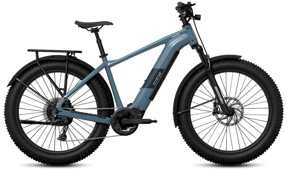 Aventure M is the perfect blend of rugged capability, performance, and technology to help you explore further than ever before. With maticulously designed frame geometry, a 80mm suspension fork, and 4.0" tires, there's nowhere the Aventure M can't take you. The Aventon A100 mid drive motor provides enough torque and power to conquer any terrain, giving you a responsive ride feel that can be easily customized with Ride Tune capabilities. With Aventon's electronic autoshift functionality ensuring you're always in the right gear at the right time, you can focus solely on the making it to the next mountain peak. ACU technology brings a host of connectivity and added security features including GPS† tracking and an integrated lock, while the updated display brings you important metrics like torque, cadence, and power to help you maximize every ride. No matter where you want to go, Aventure M will get you there.