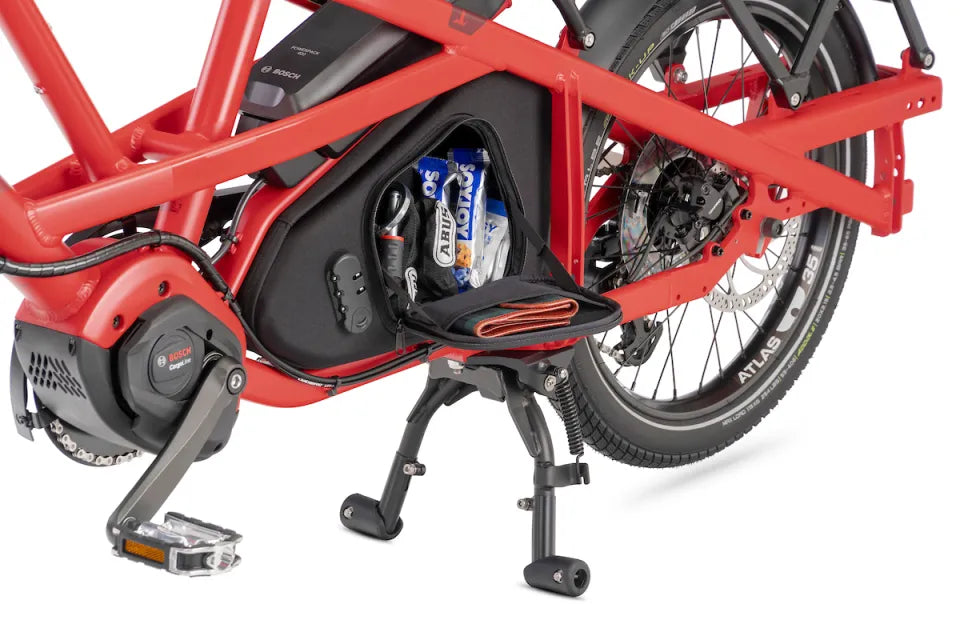 If you like to stay organized and keep your stuff hidden from view, here's a handy add-on for your Quick Haul Long e-bike. The Cache Box L is a spacious, lockable frame bag that fits right below the battery for discreet storage. Holding a chain lock and key items for roadside emergencies, it has adjustable dividers to keep everything neat, along with an inner pocket for a tracking device.