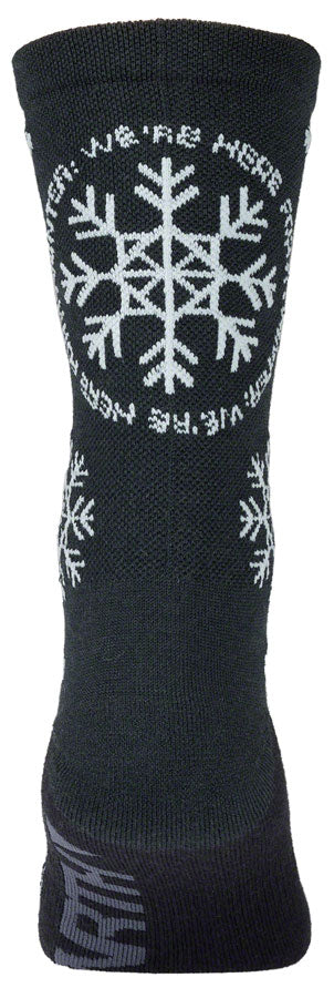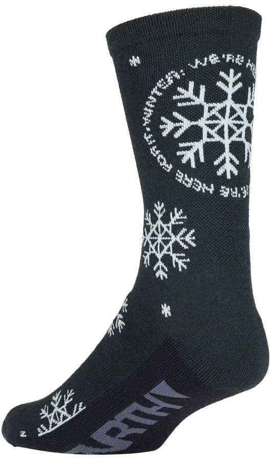 45NRTH Were Here For It Midweight Wool Sock - Blue/Light Blue Small. This midweight sock is the perfect base layer under your boots on cold ride days. The Merino wool fabric helps regulate temperature moisture and odor for a comfortable ride.