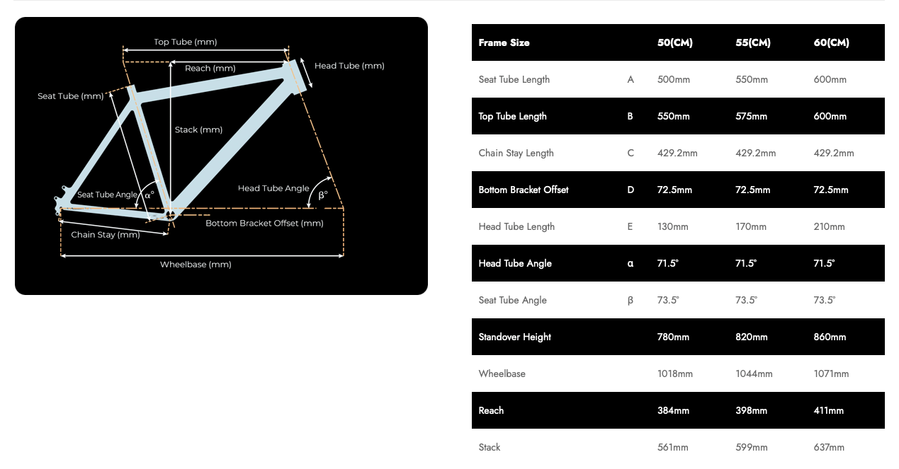 Frame: Made from aluminum 6061 with internal cable routing, the frame is both durable and lightweight. The bike is available in multiple frame sizes (50/55/60 cm) to accommodate different rider heights.