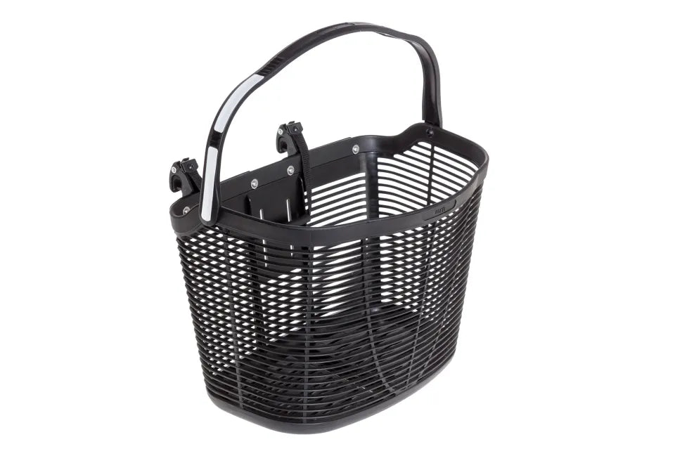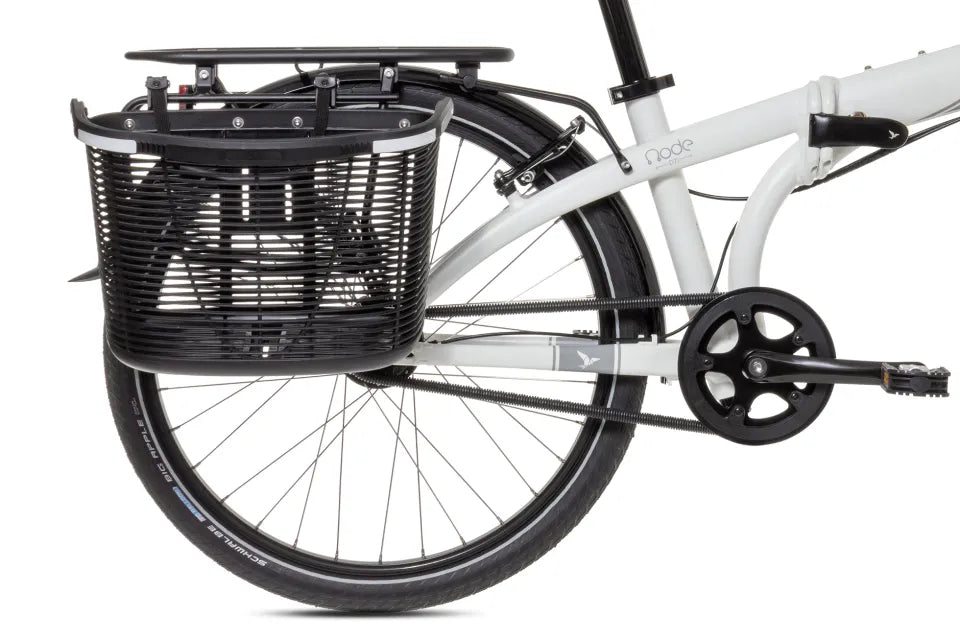 The Tern Kontti Basket is a lightweight, spacious, and virtually indestructible bike basket. It clips onto your rear rack quickly and easily with Ortlieb® pannier mounts, and sports a rugged handle for running errands in the city.