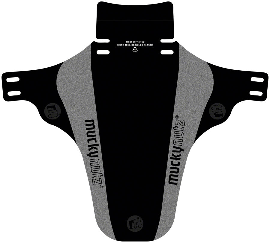 Mucky Nutz Face Fender - Reflective. Lightweight discreet and very effective the Face Fender is a simple front mud guard for mountain bikes made from 100% recycled plastic.