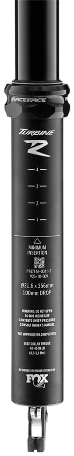 RaceFace Turbine R Dropper Seatpost - 31.6 100mm Travel Black