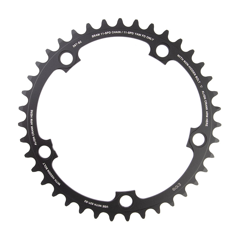 SRAM 11-Speed 39T 130mm BCD YAW Chainring Black Use with 53T. Top quality design and materials in sizes to fit modern road and cross bikes.