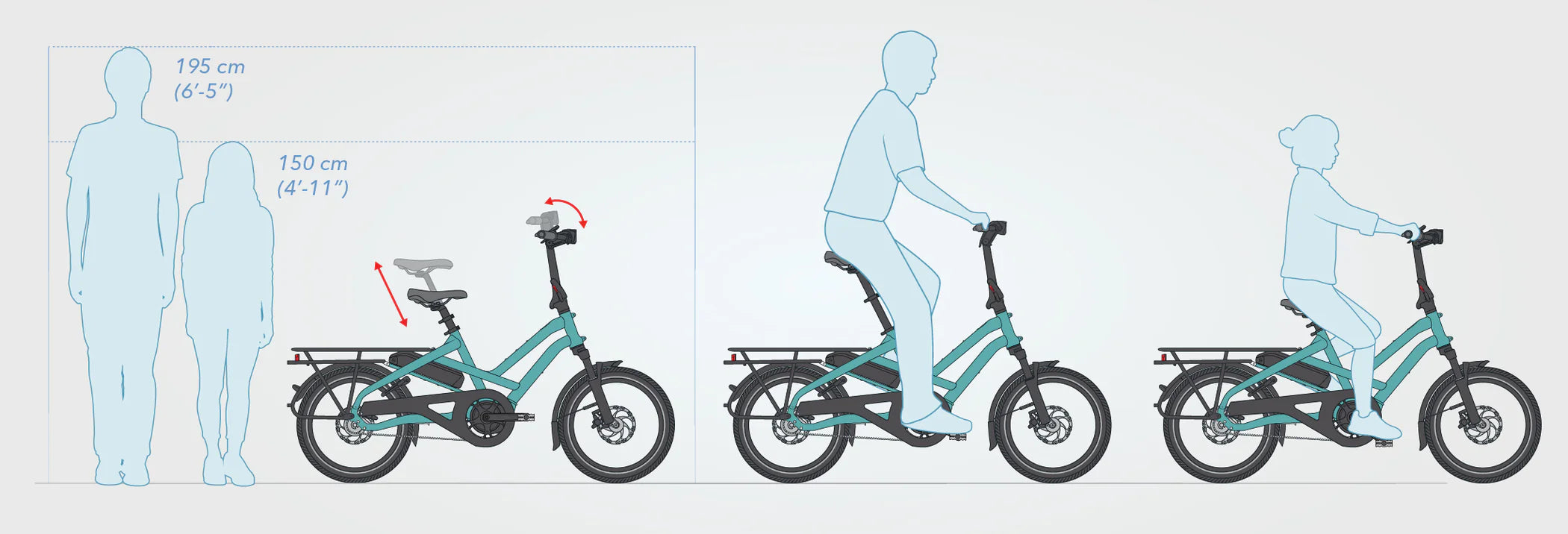 • Fits riders 150 - 195 cm (4’11” - 6’5”) with an easily-adjustable cockpit