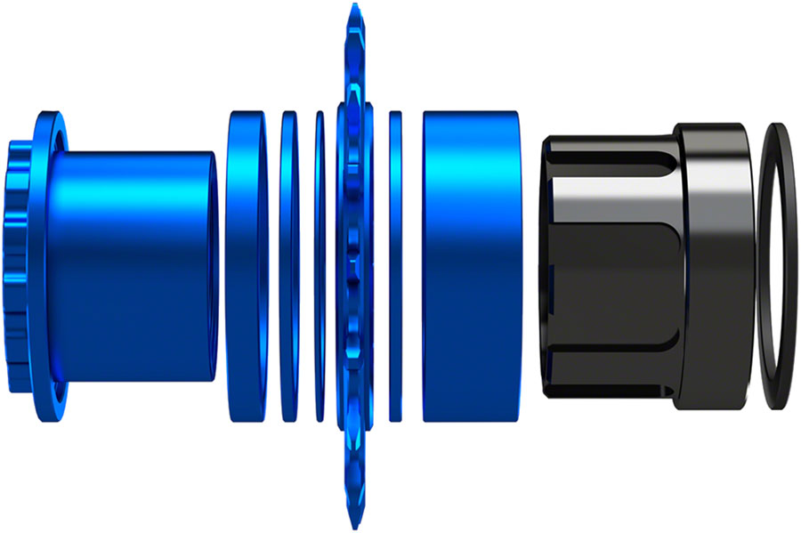 • Kit includes 1 lock ring, 1 carrier, 1 end spacer, 1 5mm spacer, 2 2mm spacers, 1 1mm spacer, 1 1.8mm XDR conversion spacer and 1 18t cog.